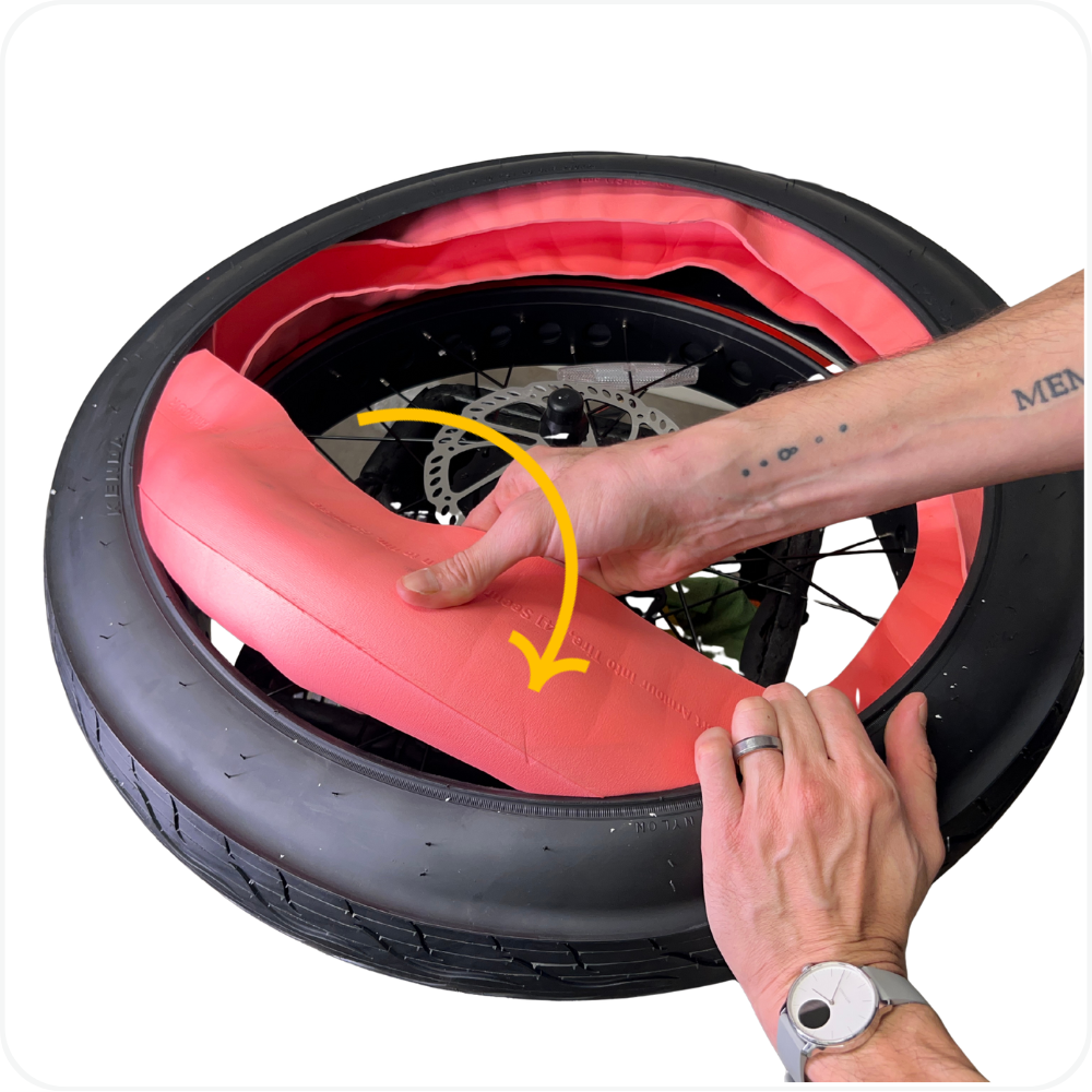 Place the Armour inside the tire, seating it evenly along the full circumference before installing the tube.