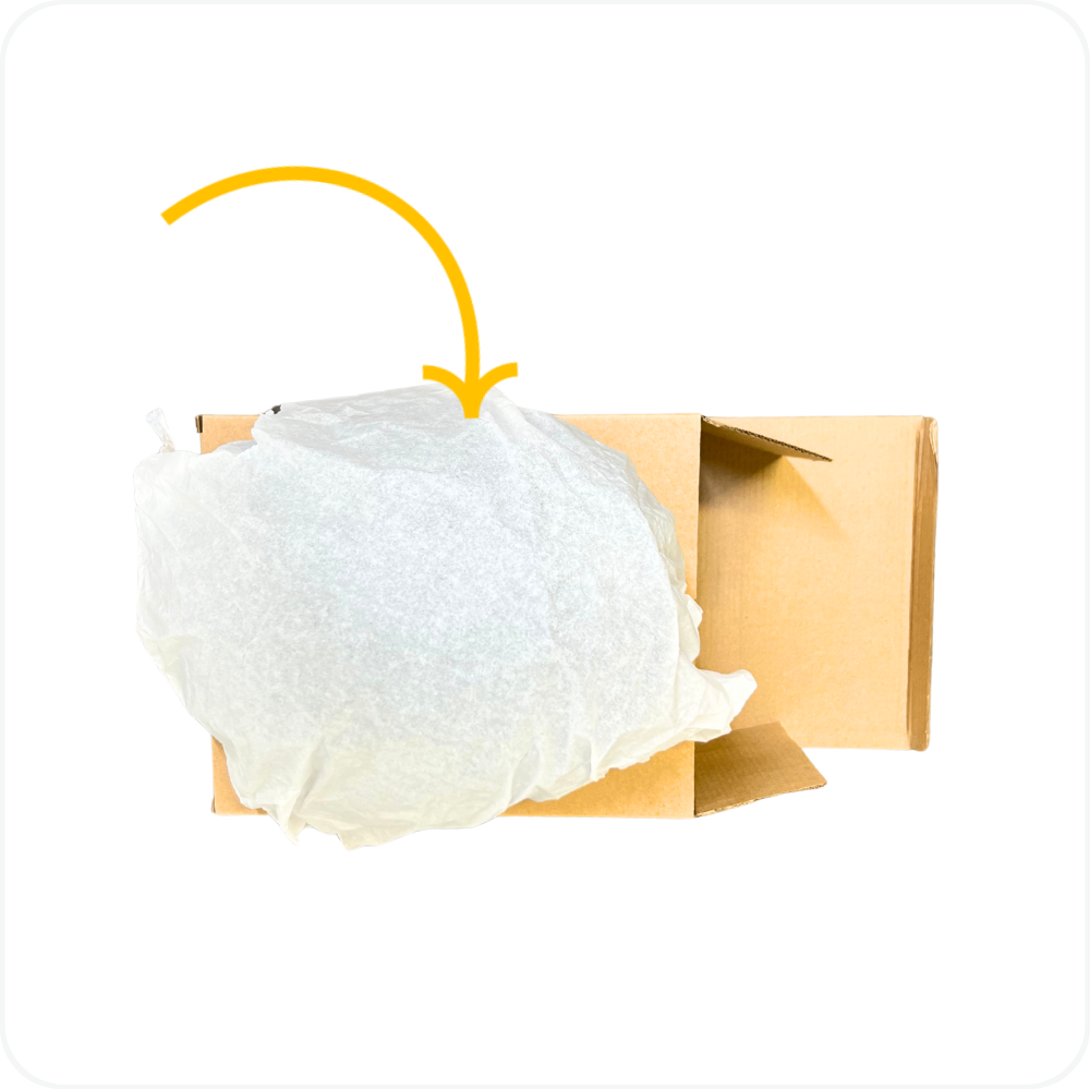 Arrange everything neatly inside the box so nothing moves around. Add extra padding if there’s empty space.