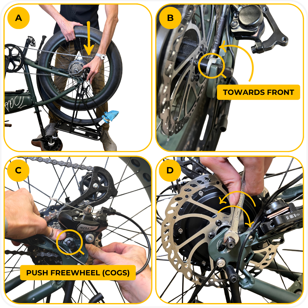 In this article: You’ll learn how to safely remove and remount your MOD BIKE wheels. These steps apply to both front and rear wheels and will help you perform maintenance, fix a flat, or prepare your bike for transport.