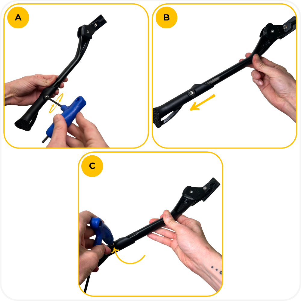 2. Extend the kickstand fully, then shorten it slightly to reach the ideal height
